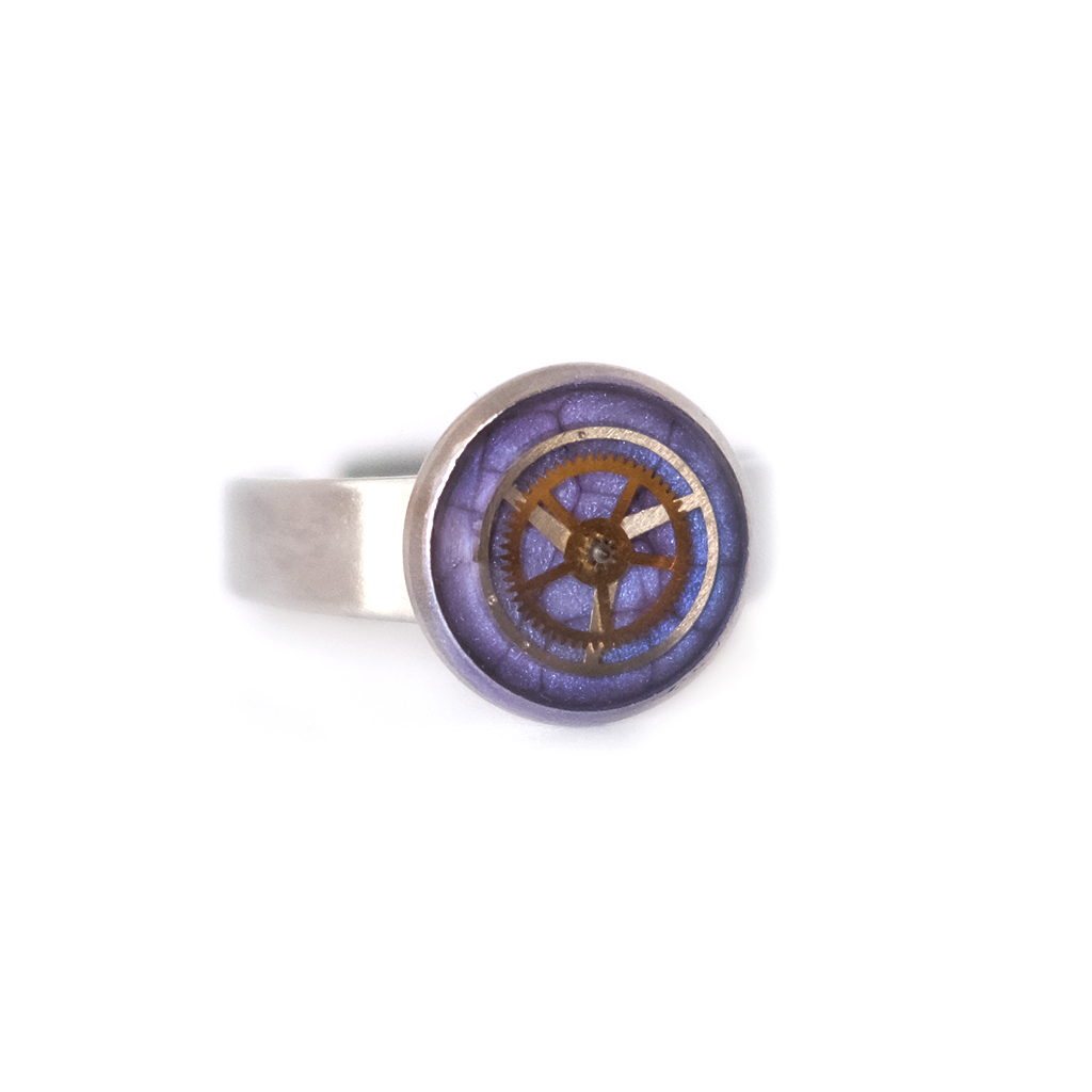 Sé el primero en valorar “Anillo artístico mecánico morado en resina”